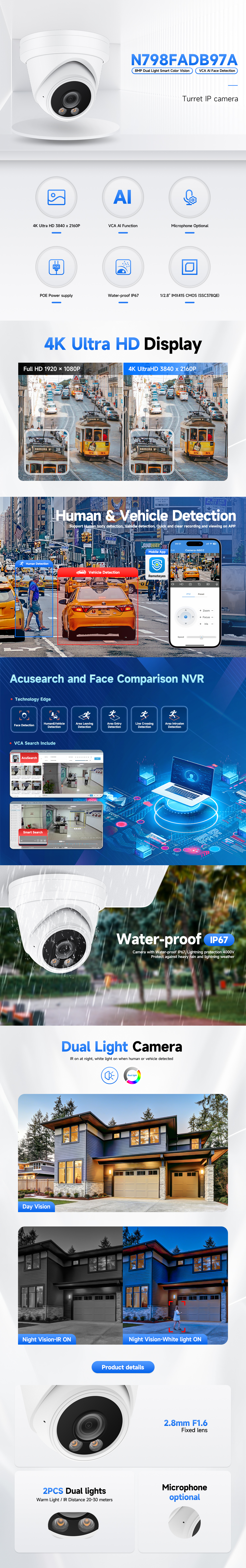 | Light Mode | Smart(dual-light) / Infrared / White light, adjustable |